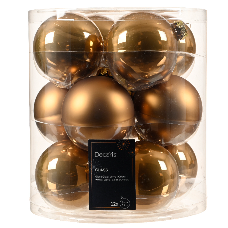 Տոնածառի ապակե խաղալիք, ginger brown, 80մմ/Տուփ 12 հատ/