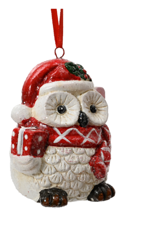 Տոնածառի խաղալիք բու` կարմիր գլխարկով, 8.3սմ