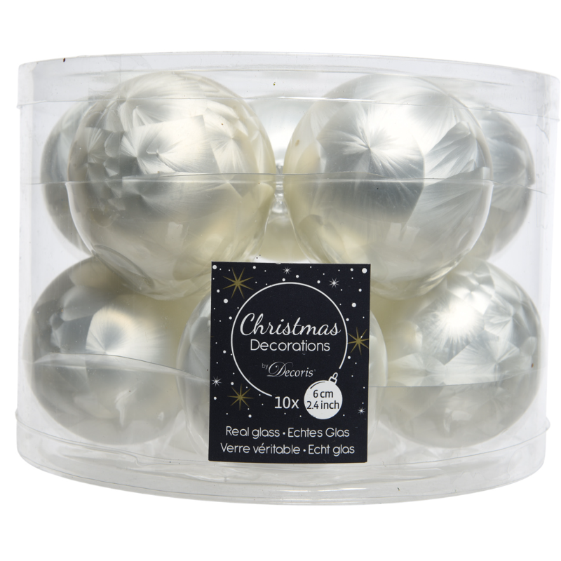 Տոնածառի ապակե խաղալիք, սառցե սպիտակ, mix, 60մմ