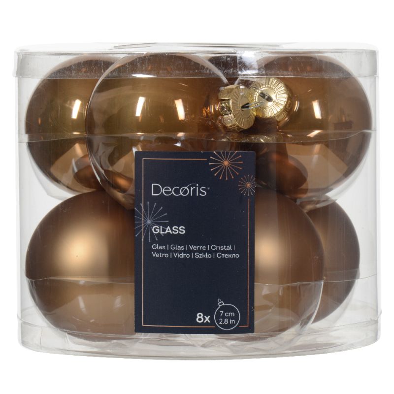 Տոնածառի ապակե խաղալիք, ginger brown, 70մմ/Տուփ 8 հատ/