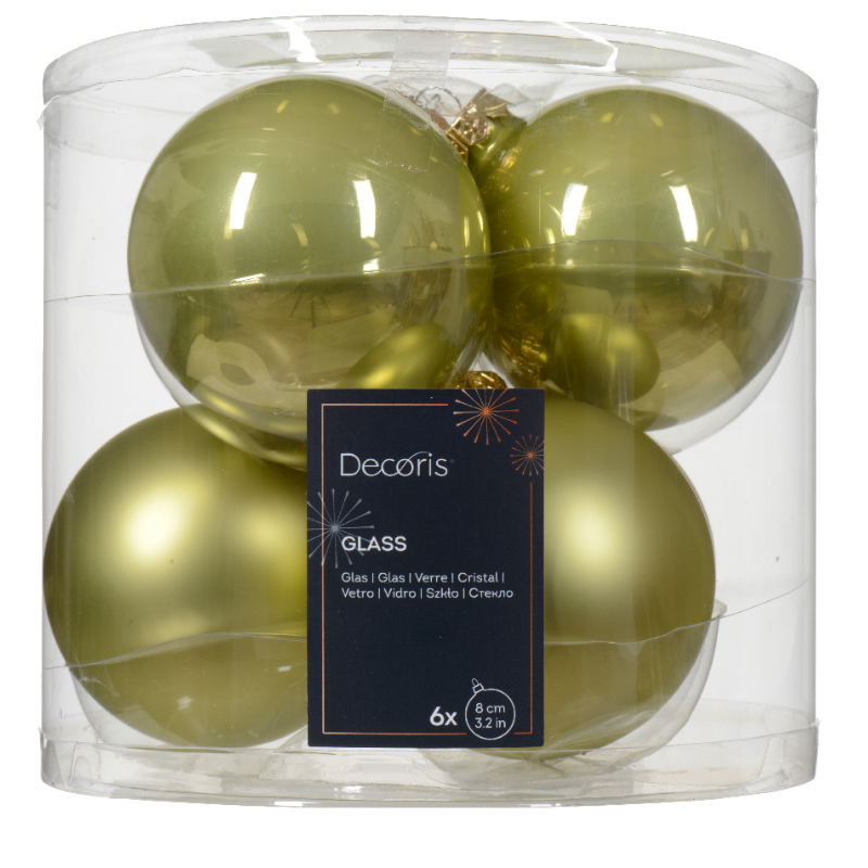 Տոնածառի ապակե խաղալիք, pistachio, 80մմ/Տուփ 6 հատ/