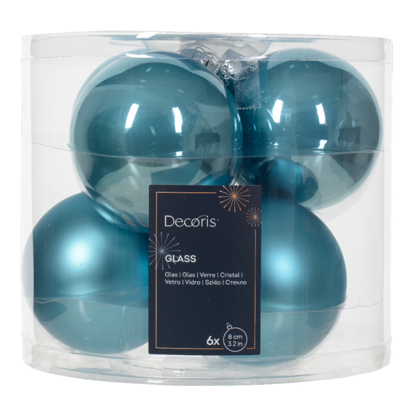 Տոնածառի ապակե խաղալիք, sugar blue, 80մմ/Տուփ 6 հատ/