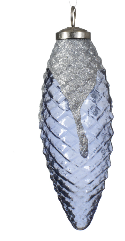 Տոնածառի ապակե երկար կոնաձև խաղալիք կապույտ/թափանցիկ, 16սմ
