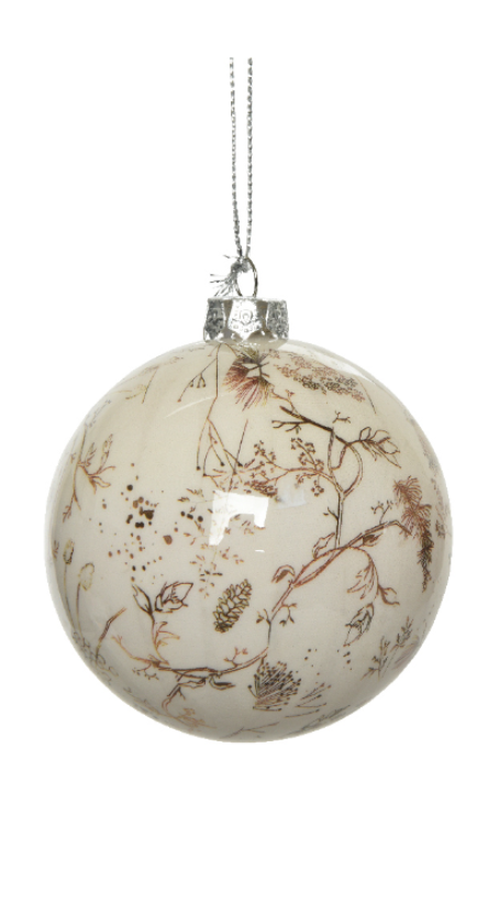 Տոնածառի խաղալիք նկարազարդված ճյուղերով, butterscotch/white, 8սմ