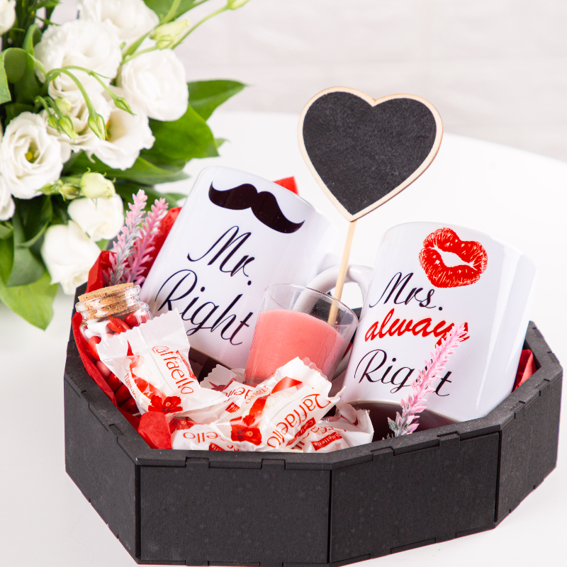 Պարունակությունը՝ Կոնֆետների հավաքածու Ռաֆֆաելլո՝ 200գ, Շոկոլադե սալիկներ Kinder` 58 հատ։ Չափսը՝ Տրամագիծ՝ 21 սմ, Բարձրություն՝ 23 սմ։