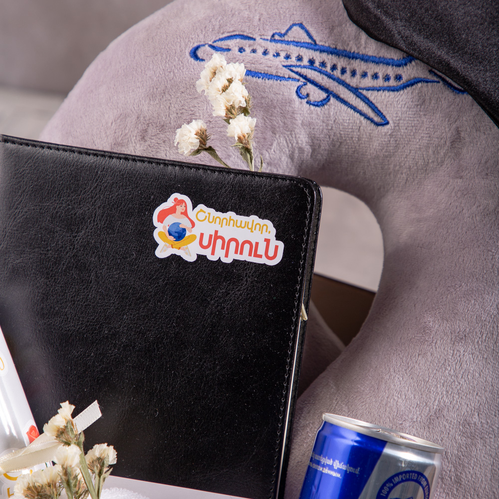 Պարունակությունը՝ Սրբիչ, RedBull էներգետիկ ըմպելիք 250 մլ, Նոթատետր, Աչքերի դիմակ, Բարձ ճամփորդական, Ստիկերների հավաքածու։ Տուփի նյութը՝ Փայտ։ Չափսը՝ Երկարություն - 26 սմ, Լայնություն - 20 սմ։ Բարձրություն - 10 սմ։