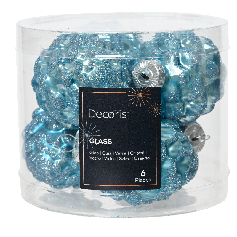 Տոնածառի ապակե խաղալիք կոն, 70մմ, sugar blue/Տուփ 6 հատ/