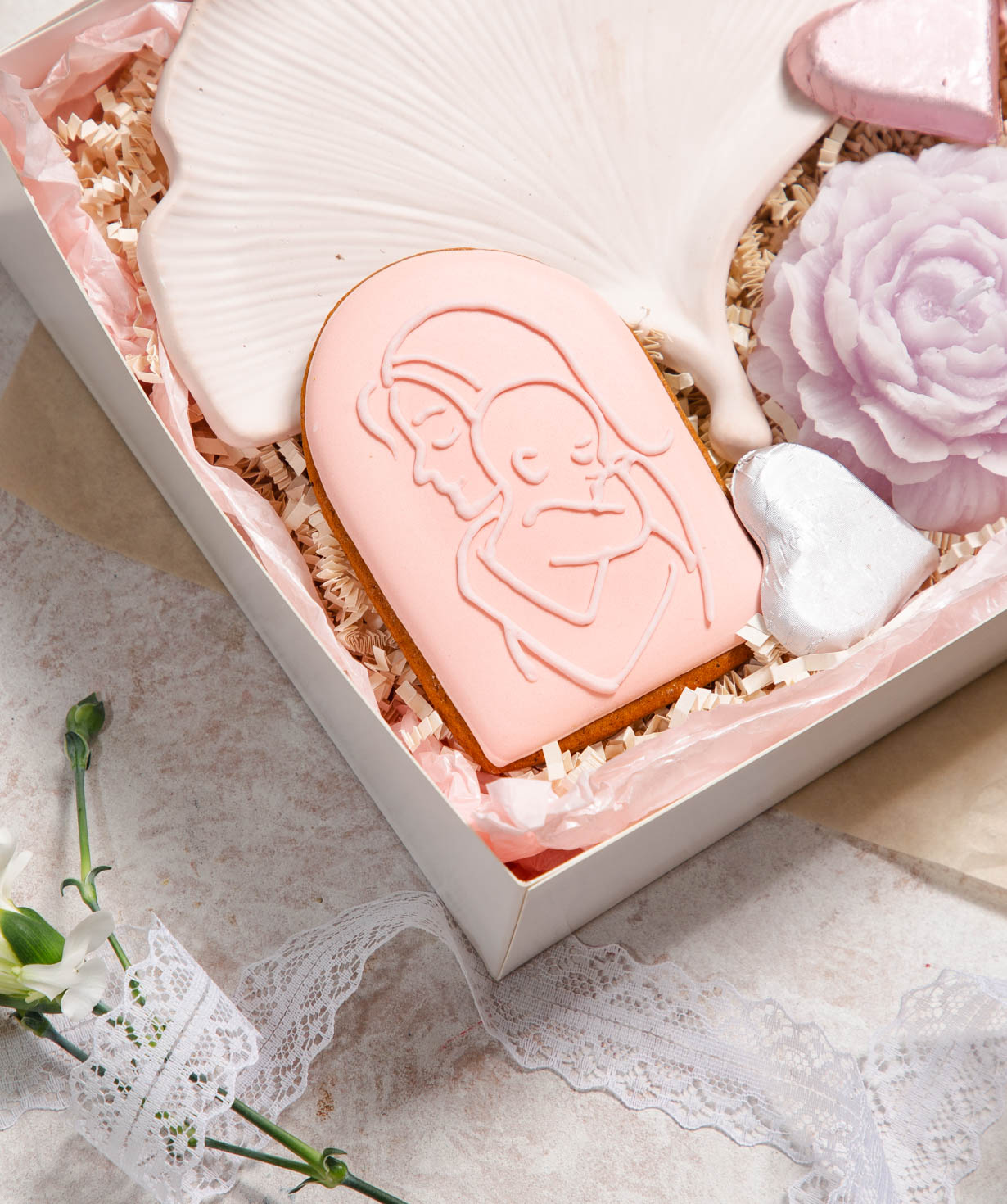 Պարունակությունը՝ ափսե, մոմ, թխվածքաբլիթ, շոկոլադե կոնֆետ։ Չափսերը Լայնություն 16,5 սմ. Երկարություն 23 սմ. Բարձրություն 6,5 սմ.